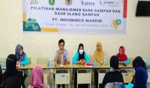 “Pelatihan ini bertujuan untuk memberikan edukasi kepada pengurus bank sampah serta masyarakat secara umum agar mampu meningkatkan kemampuan dalam aspek pengelolaan bank sampah yang ada di sekitar tempat tinggal mereka, sekaligus memupuk kreatifitas guna meningkatkan nilai ekonomis yang didapat oleh masyarakat dalam hal daur ulang sampah,” terang anggota Comdev PT IMM, Andi Asri, saat dikonfirmasi disela kegiatan yang dilaksanakan di Pusat Kegiatan Belajar Mengajar (PKBM) Damai Mandiri yang berada di Desa Suka Damai, Kecamatan Teluk Pandan, Rabu (21/12/2022).