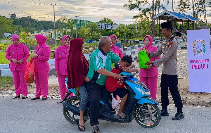 Selain kegiatan berbagi takjil, Polsek Sangkulirang juga melaksanakan pengamanan di area pasar Ramadan yang mengalami peningkatan kepadatan lalu lintas.