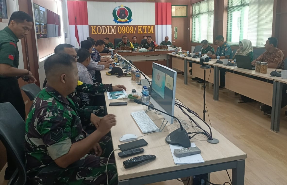 SANGATTA, KASAKKUSUK.com – Dandim 0909/Kutai Timur, Letkol ARH Ragil Setyo Yulianto, memaparkan kegiatan TNI Manunggal Membangun Desa (TMMD) ke-125 kepada tim pengawas dan evaluasi (Wasev) TNI di ruang Yudha Kodim 0909/Kutai Timur, Jalan Teritorial Kompleks Perkantoran Bukit Pelangi Sangatta pada Kamis, 7 Agustus 2025.