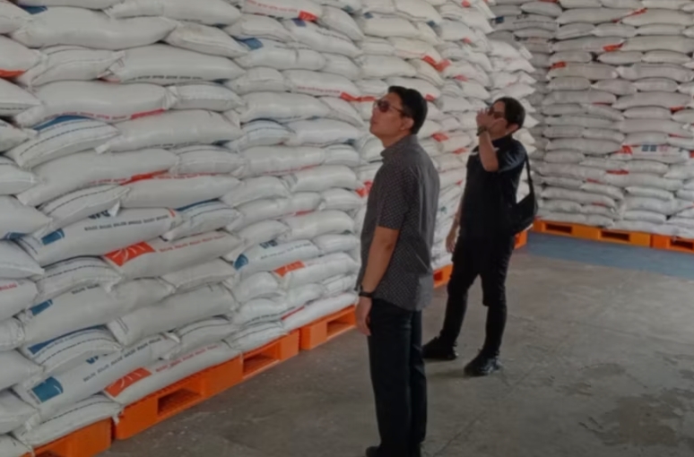 Hasil pemeriksaan menunjukkan stok dalam kondisi aman dengan rincian 51.770 kg beras medium polos kemasan 50 kg, 28.850 kg beras SPHP (Stabilisasi Pasokan dan Harga Pangan) kemasan 5 kg, 10.968 liter minyak goreng, serta 1.050 kg gula pasir kemasan 50 kg.