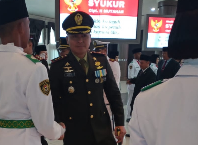 Pada kesempatan itu, Dandim memberi ucapan selamat kepada Paskibraka yang akan bertanggung jawab pada pelaksanaan pengibaran bendera merah putih pada puncak peringatan HUT ke-80 Kemerdekaan RI.