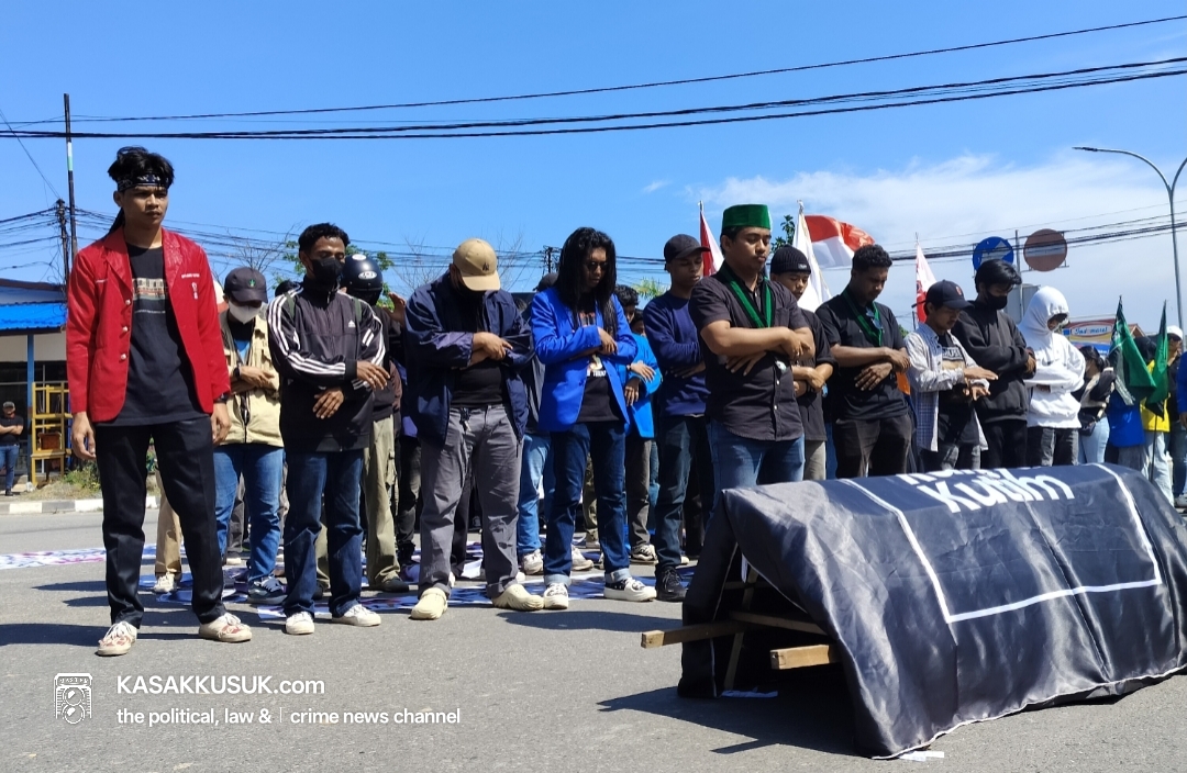 Tak berselang lama, mereka kemudian menggelar salat gaib.  Mendoakan almarhum Affan Kurniawan (21 tahun) pengemudi ojek online (ojol) yang meninggal dunia akibat dilindas kendaraan taktis (rantis) milik Brimob saat demonstrasi skala besar di Jakarta. Usai salat gaib, mereka kembali melanjutkan orasi.