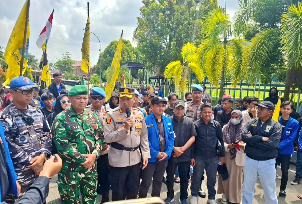 Dalam unjuk rasa mahasiswa  menyuarakan sejumlah aspirasi terkait kebijakan daerah, jajaran Polres memberikan pengawalan dengan pendekatan persuasif dan penuh empati.