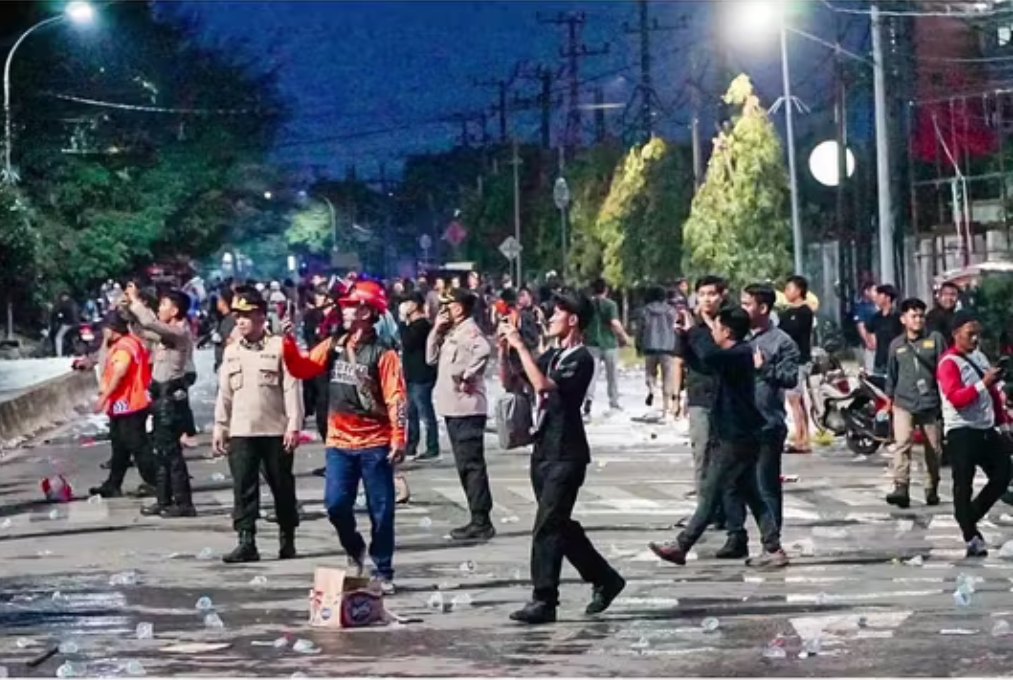 Aparat gabungan juga terpaksa melakukan tindakan tegas terukur dengan melepaskan tembakan gas air mata untuk memukul mundur massa yang melakukan pelemparan dengan benda keras dan bom molotov.