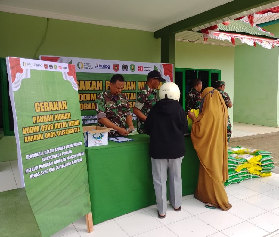 SANGATTA, KASAKKUSUK.com – Kodim 0909/Kutai Timur menggelar operasi Gerakan Pangan Murah (GPM) untuk menekan inflasi dan meningkatkan daya beli masyarakat.