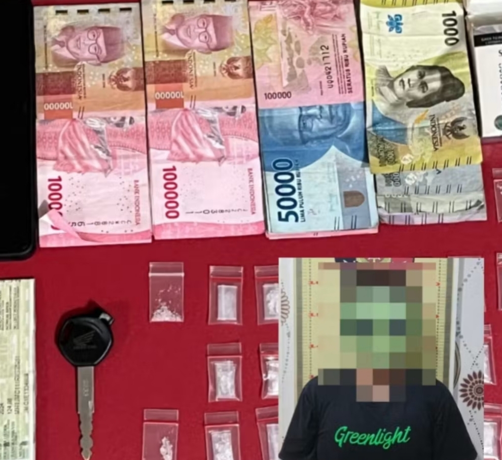 Petugas langsung melakukan pemeriksaan dan menemukan bungkus rokok berisi puluhan paket sabu. Selain narkotika, turut diamankan barang bukti lain berupa sepeda motor, kunci kontak, ponsel, STNK, serta uang tunai lebih dari Rp3 juta yang diduga hasil penjualan barang haram tersebut.