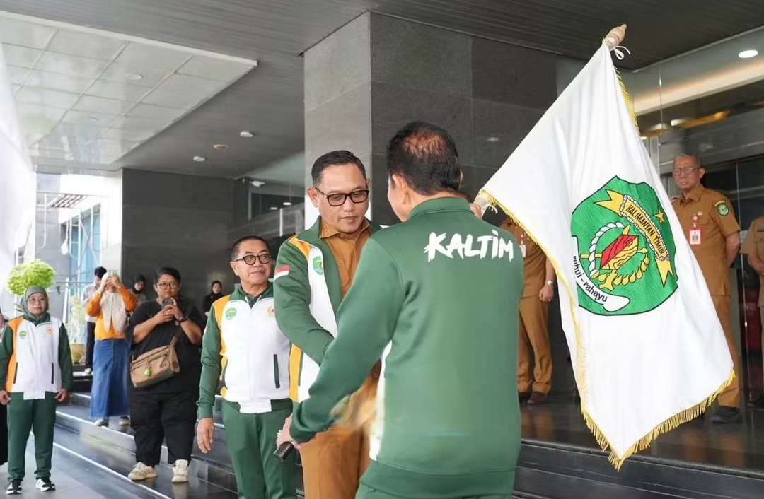 Wakil Gubernur Kaltim, Seno Aji melepas kontingen di halaman kantor gubernur Kaltim di Samarinda pada Senin, 22 September 2025. Kontingen Kaltim diberi target meraih juara umum pada ajang olahraga bergengsi ini.