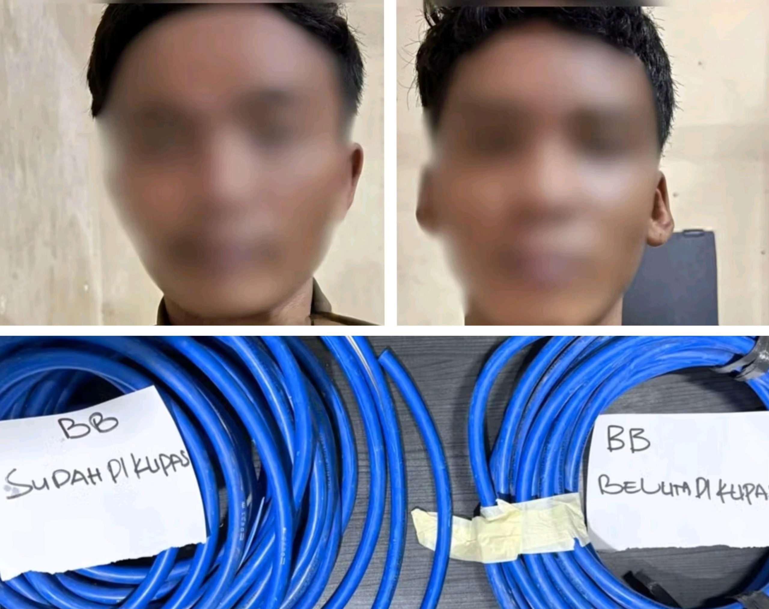 Kedua maling ini ditangkap beserta barang bukti berupa gulungan kabel las yang sebelumnya dilaporkan hilang pada Senin, 29 September 2025.