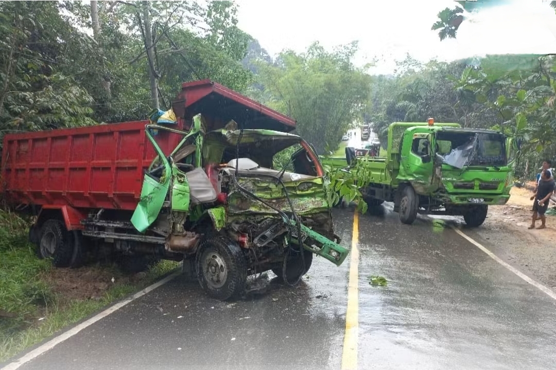 Peristiwa tersebut melibatkan dua kendaraan besar yakni Dump Truk Hino bernomor polisi KT-8907-BW dan Mitsubishi Truk Tronton KT-8462-KP.