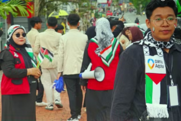 Dalam aksi damai kali ini diawali dengan pembukaan, kata sambutan, doa bersama, penandatanganan petisi sebagai komitmen dukungan terhadap Palestina, dan pelepasan peserta long march.