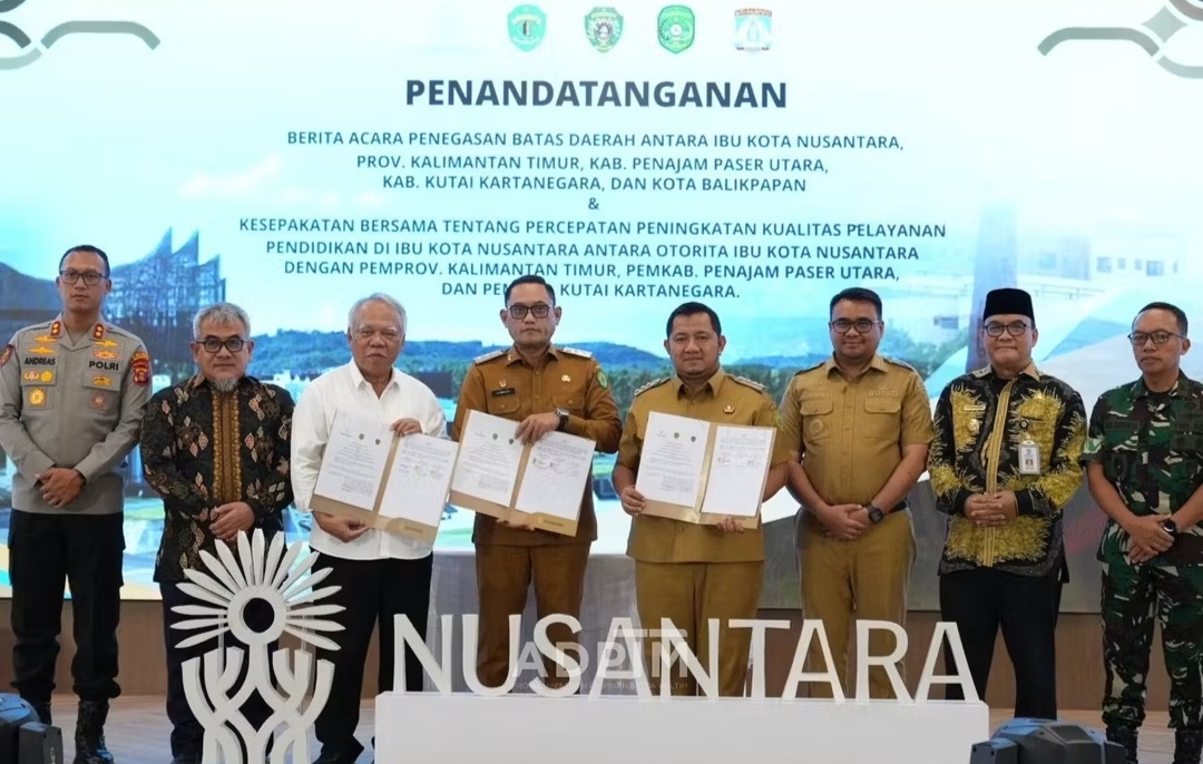 NUSANTARA, KASAKKUSUK.com -Pemerintah Provinsi (Pemprov) Kaltim) meneken berita acara penegasan batas atau delineasi daerah dengan Otorita Ibu Kota Nusantara (IKN), bersama Kabupaten Kutai Kartanegara, Kabupaten Penajam Paser Utara (PPU), dan Kota Balikpapan.