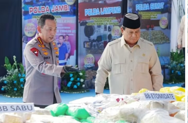 JAKARTA, KASAKKUSUK.com Presiden RI, Prabowo Subianto memimpin pemusnahan barang bukti seberat 214,84 ton narkoba hasil pengungkapan Polri dalam setahun terakhir.