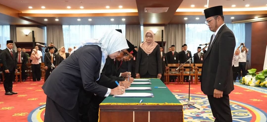SAMARINDA, KASAKKUSUK.com – Gubernur Kaltim, Rudy Mas’ud melantik dan mengambil sumpah 91 pejabat di lingkungan Pemerintah Provinsi Kaltim berlangsung di Ruang Ruhui Rahayu, Kantor Gubernur Kaltim, Jalan Gajah Mada, Samarinda pada Senin, 22 Desember 2025.