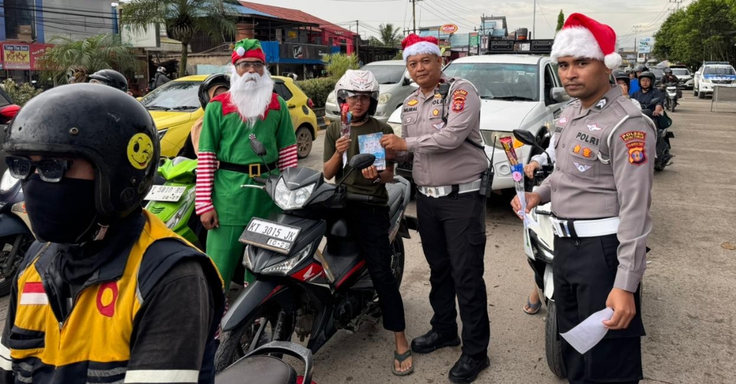 SANGATTA, KASAKKUSUK.com – Satuan Lalu Lintas (Lantas) Polres Kutai Timur terjun langsung ke lapangan dalam menyemarakkan sekaligus mendukung pengamanan perayaan Natal 2025 dan Tahun Baru 2026 (Nataru) dengan cara unik dan humanis.
