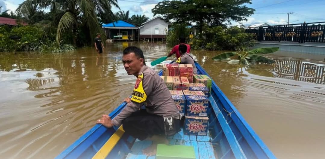 Selain menyalurkan sembako, personel Polsek Tabang juga terjun langsung membantu warga di lapangan. Petugas membantu masyarakat melintasi jalan yang masih tergenang air serta mengangkat barang-barang milik warga ke tempat yang lebih aman agar terhindar dari kerusakan akibat banjir.